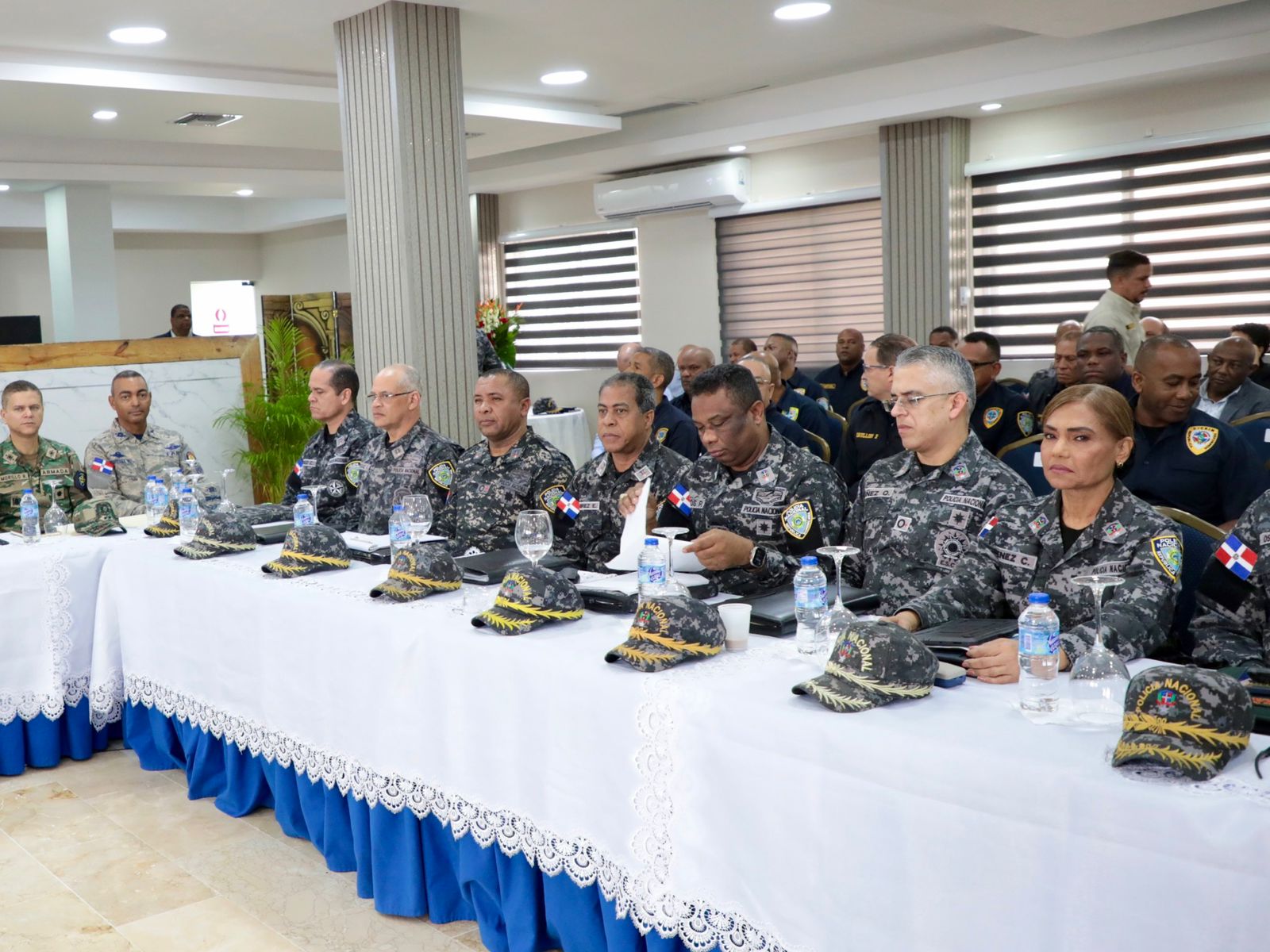 En el encuentro que se celebra en el Salón del Club de Oficiales del Palacio de la Policía Nacional, se continúan evaluando las tareas asignadas, logros obtenidos y las medidas para continuar fortaleciendo la seguridad en el país.